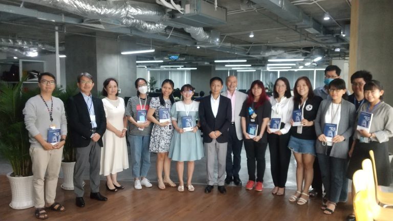写真は、藤本会長とアレクシード・ベトナムの翻訳チームとの記念写真です。