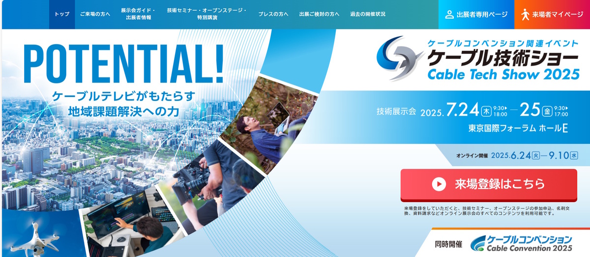7月24日(木)・25日(金)の2日間、東京国際フォーラム ホールEにおいて開催された、ケーブル技術ショー2025に参加しました。